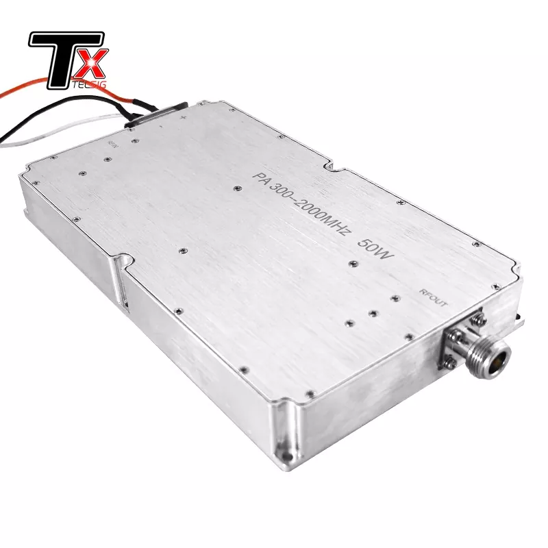 Široký kapacitní zesilovač 300–2 000 MHz 50 W bez zdroje signálu je výkonový zesilovač pracující ve frekvenčním rozsahu 300–2000 MHz. Vyvíjí se bez vytvořeného zdroje signálu, který poskytuje jednoduchost návrhu a zjednodušuje integraci s externími zařízeními pro zadávání signálu. Je zaručena kvalita modulů produkovaných Texinem a jejich vynikající provozní charakteristiky a vysoká účinnost jsou mezi kupujícími populární.